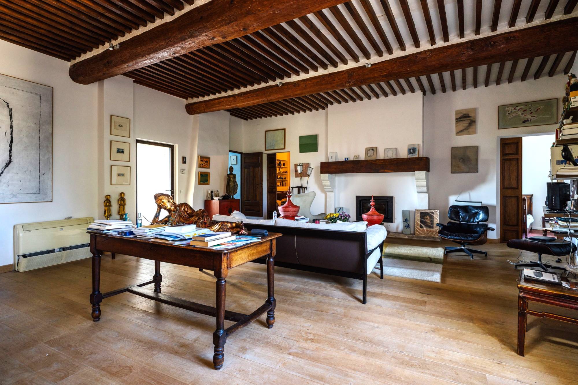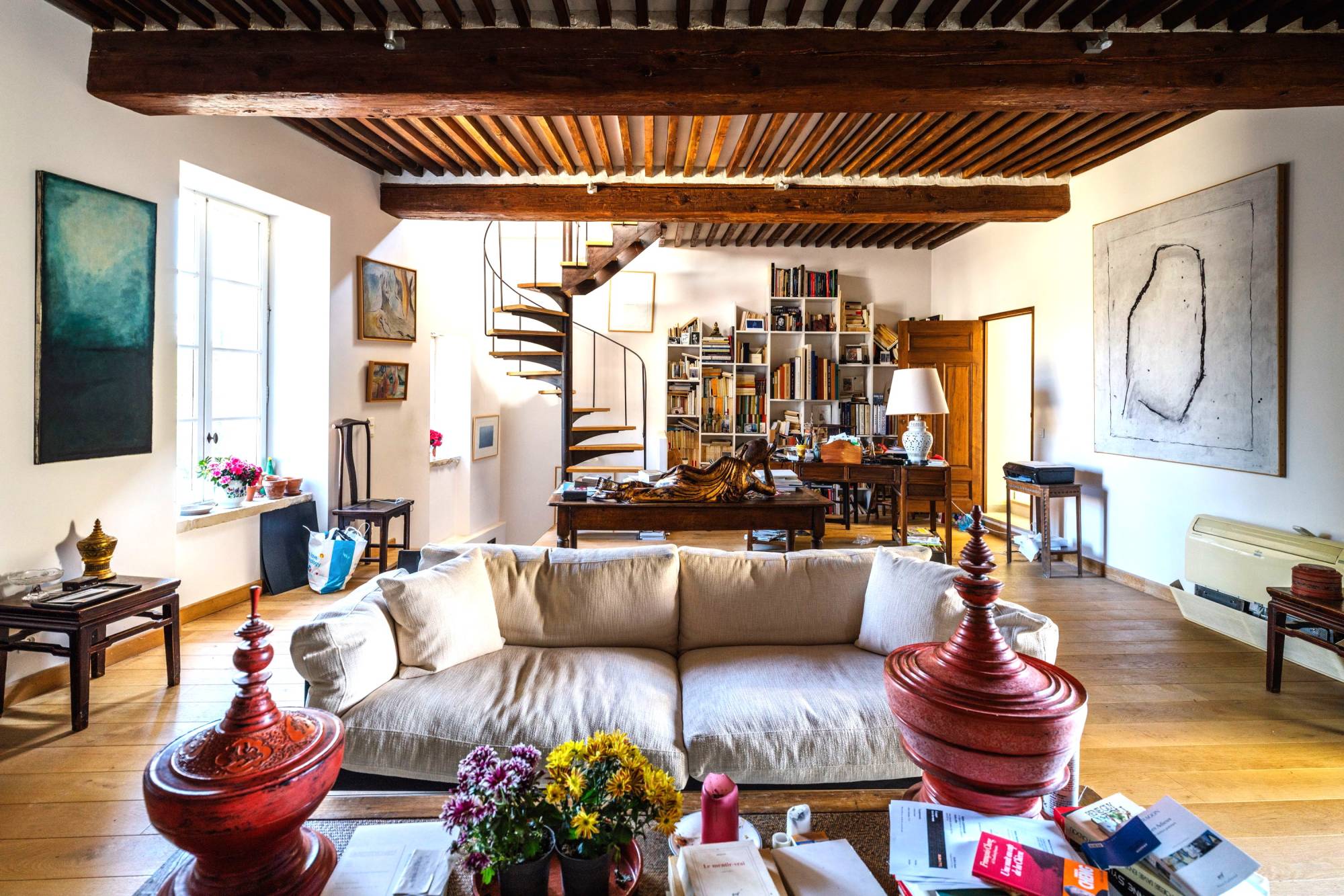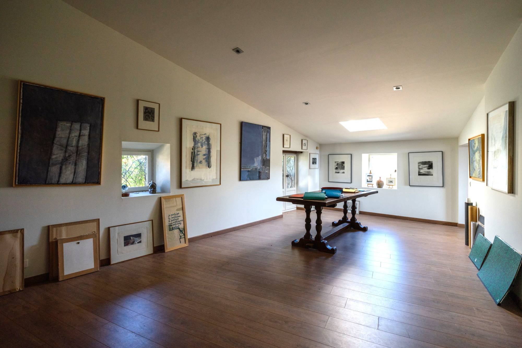 Le premier et second étages sont aménagés en très grandes pièces de vie, actuellement bureau, salon et espace sans attribution particulière, et en chambres et pièces d'eau.