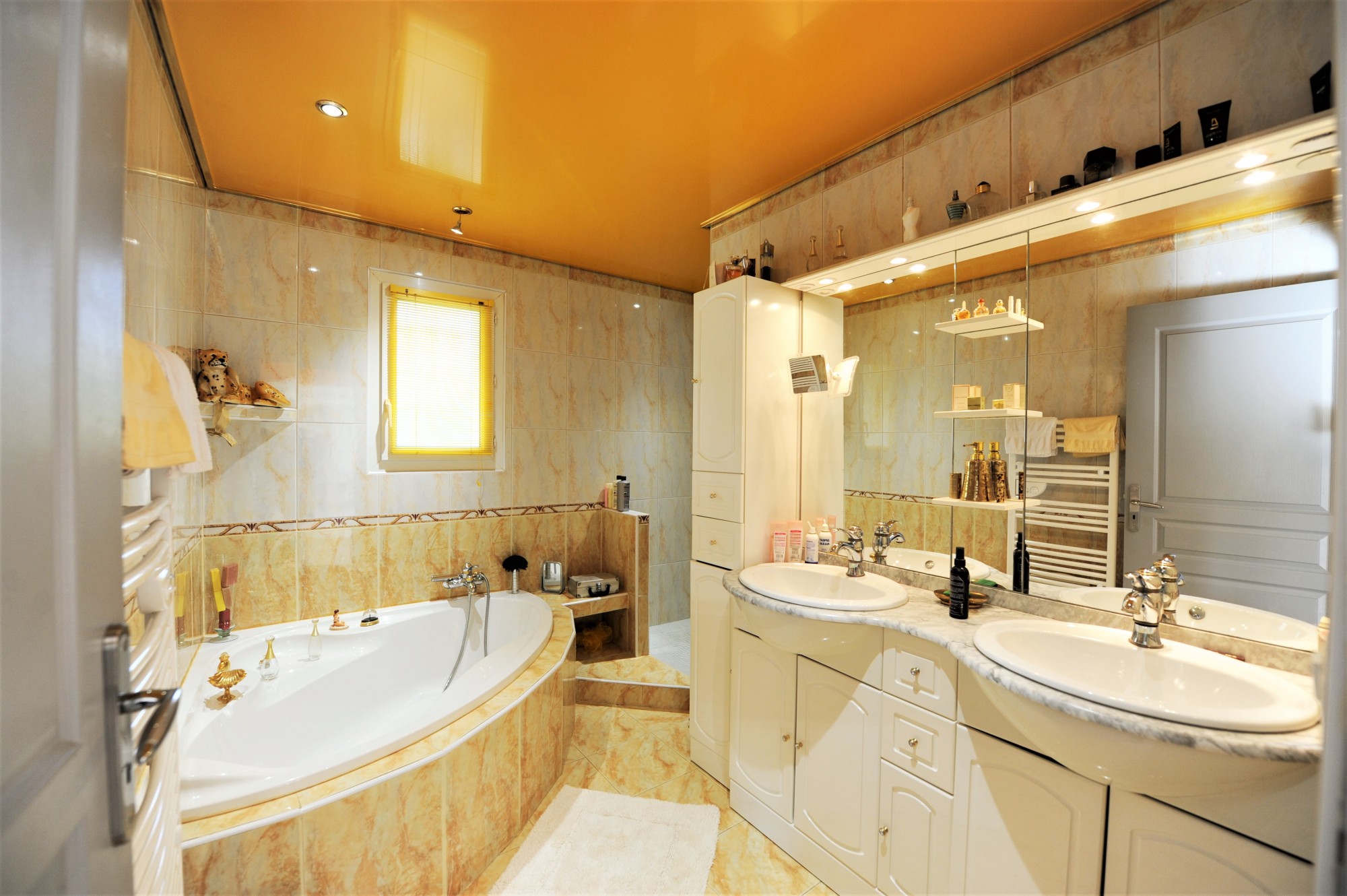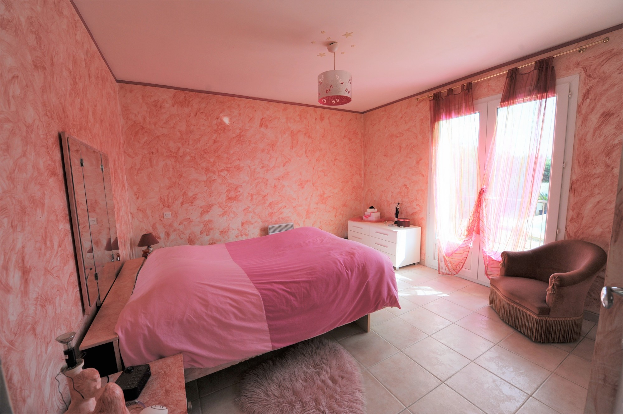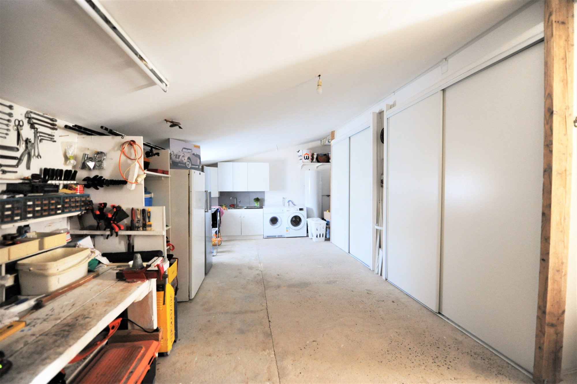 La maison offre également trois chambres avec placards, dont une avec balcon pour profiter de la vue sur la piscine, une salle de bains complète (baignoire d’angle et douche) et un wc séparé avec lave-mains. Un grand garage/buanderie de 30 m²,déjà isolé et accolé à la cuisine, peut être aménagé en surface habitable.