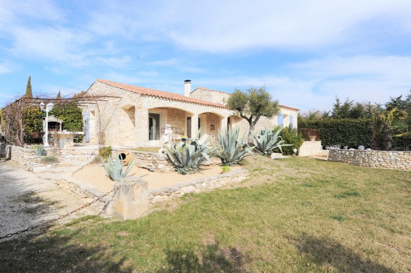 Maison en pierres de Gordes, d’une superficie utilisable de 108 m², sur un terrain clos et arboré de 1 500 m² avec piscine.