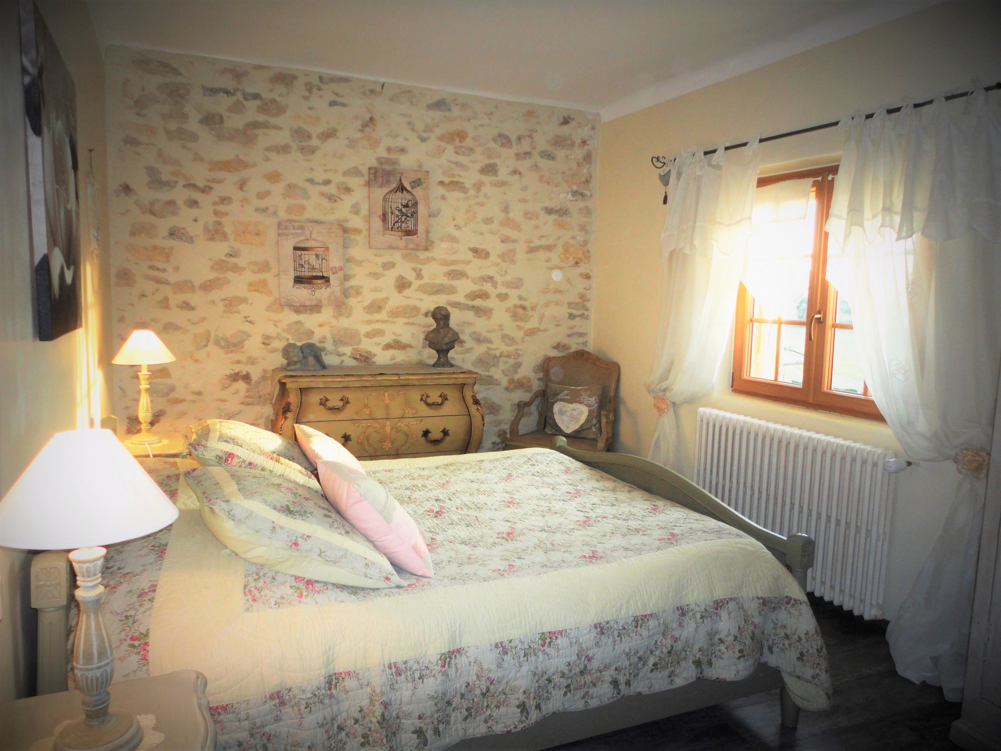 Restauré en 2009, vous tomberez dès votre arrivée sur une grande cour intérieure. Vous découvrirez au rez-de-chaussée une grande cuisine, un salon et une salle à manger voutée en pierre sèche (ancienne écurie) avec une belle cheminée des WC invités, et une grande chambre avec sa salle d’eau.
