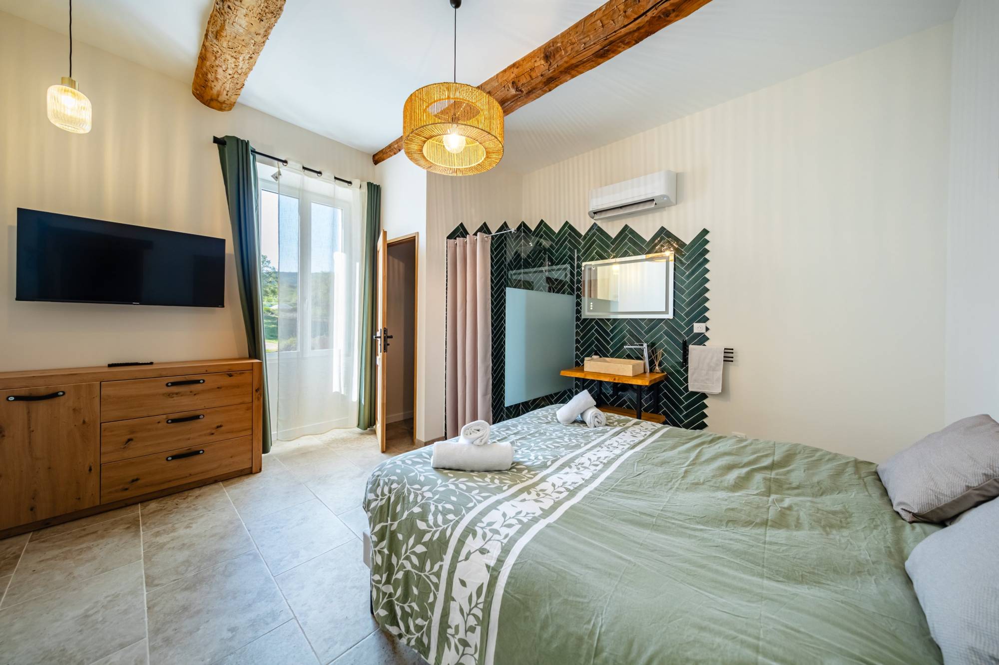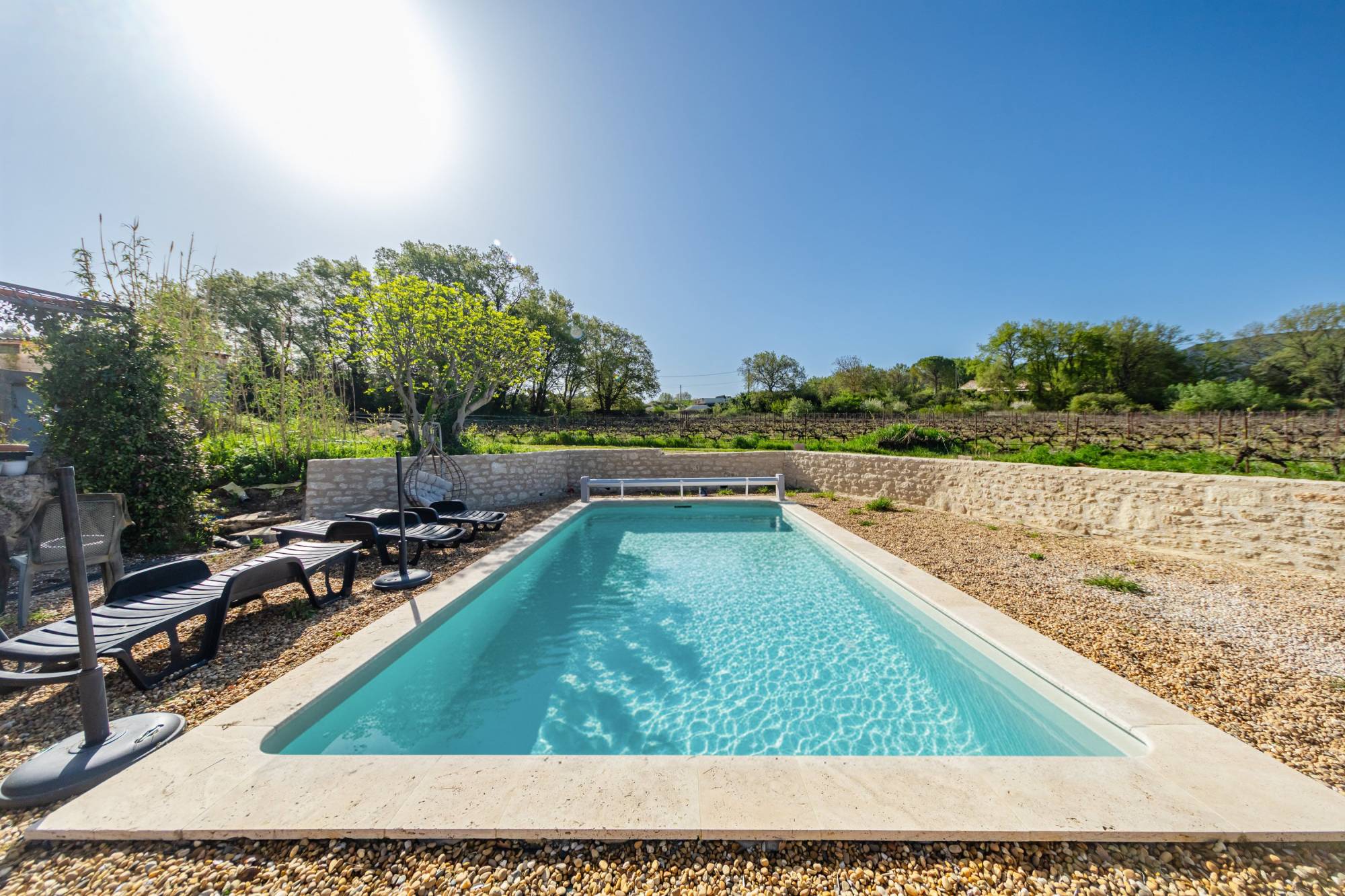 À l’extérieur, les espaces se déploient avec élégance et générosité. Deux piscines viennent ponctuer les jardins et terrasses, invitant à la détente face à un horizon ouvert, où les collines du Luberon se succèdent à perte de vue.