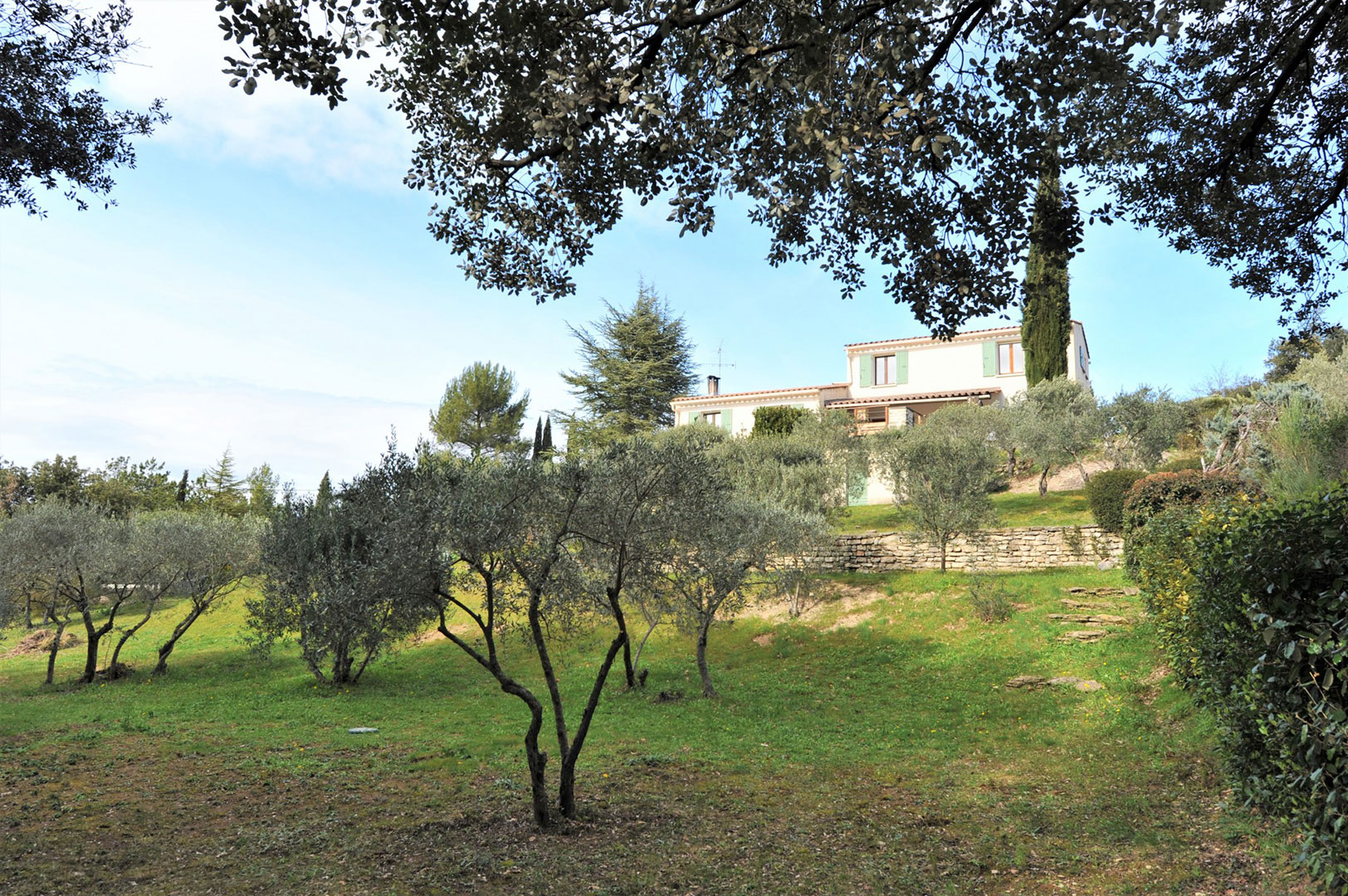Très beau jardin en terrasses, complanté d'amandiers, oliviers, pins, fruitiers, cyprès, magnolias, etc. offrant une vue imprena...